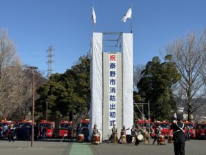 令和8年秦野市出初式がカルチャーパーク第2駐車場で開催され来賓として出席しました。
