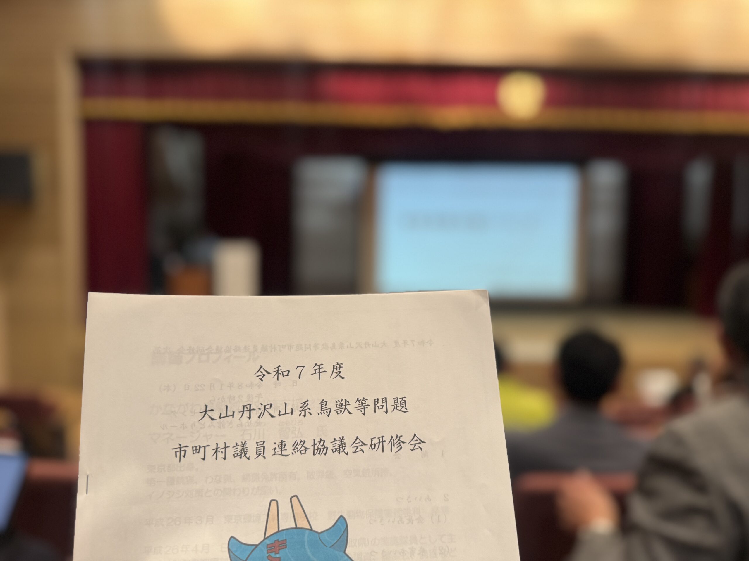大山丹沢鳥獣問題市町村議員連絡協議会研修会が、清川村生涯学習センター「せせらぎ館」にて開催され会員として出席しました。