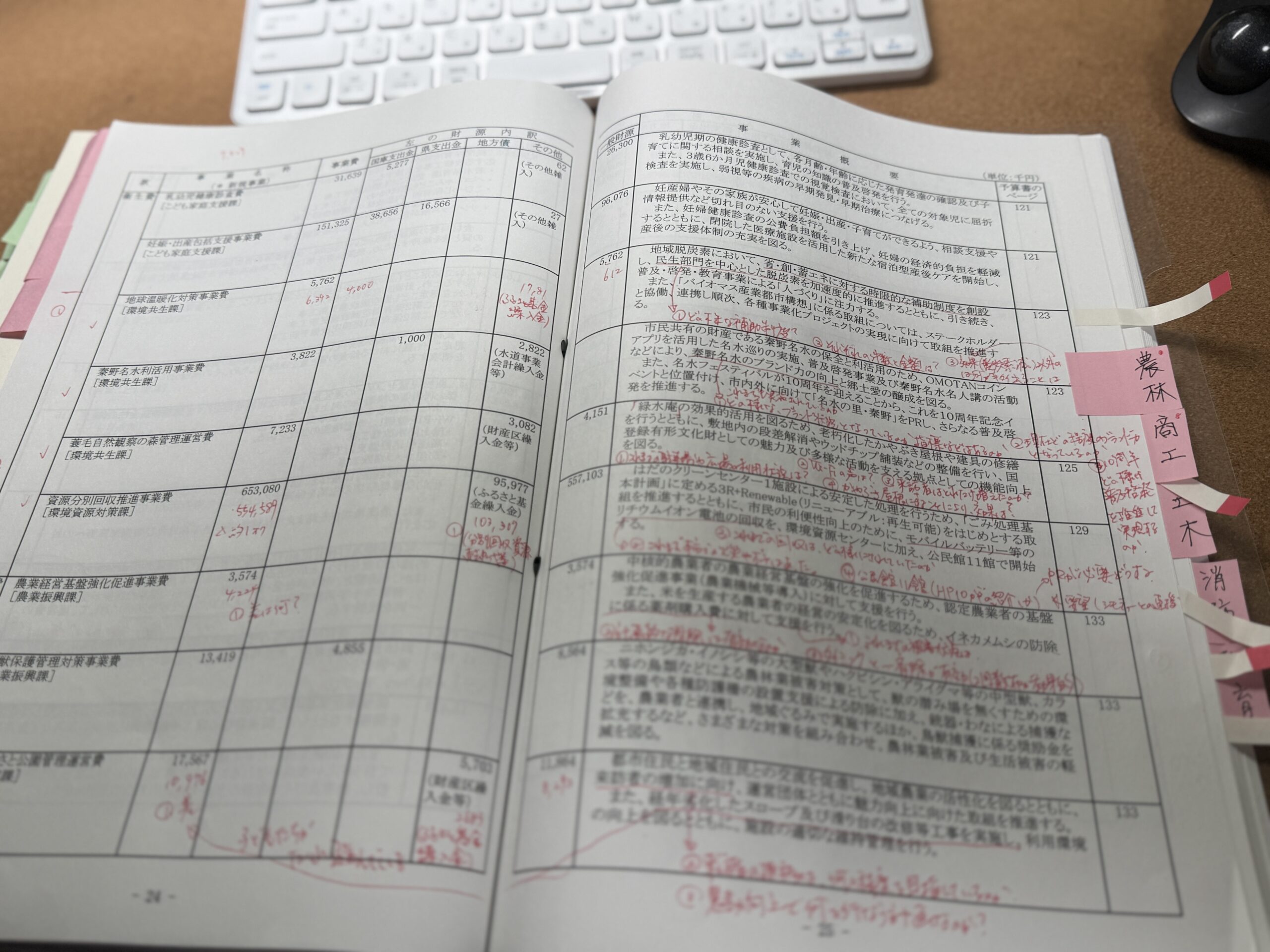 まずは予算書を丁寧に読み込み、気になる点に赤ペンで印をつけながら、「なぜこの事業なのか」「効果はどうなのか」「市民の皆さんにとって本当に必要な内容か」といった視点で、質問のヒントを探りました。