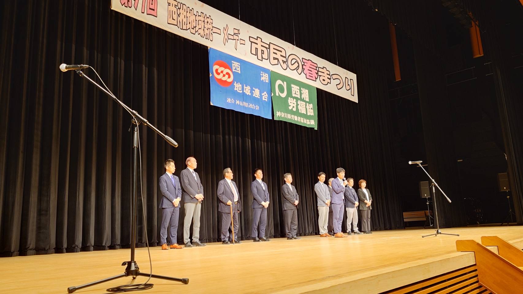 本日、ひらしん平塚文化芸能ホールおよび見附台公園にて、市民の春まつり「第97回西湘地域統一メーデー」が開催されました。